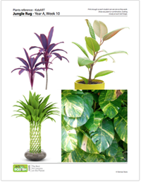 Artists enjoy drawing a still life that features plants, and then using watercolors to paint it. There is some review of shadows and highlights during the artwork time. After a break, the kids cut jungle-like shapes out of colored papers and use them to make a jungle rug collage. There is an extra project to create an oil pastel art of plants from the still life if there is enough time.– – –