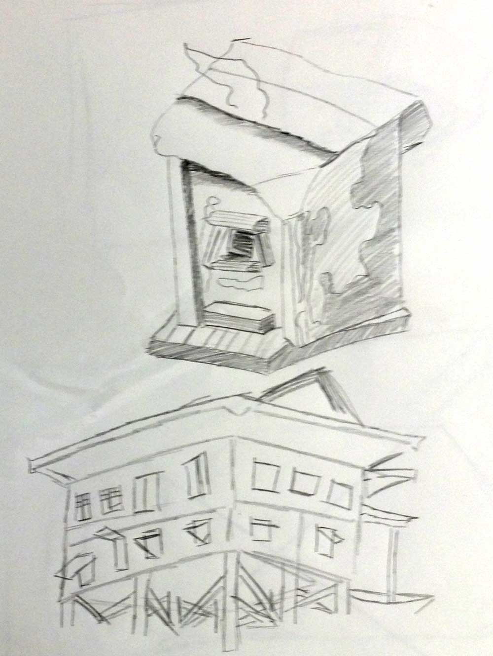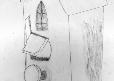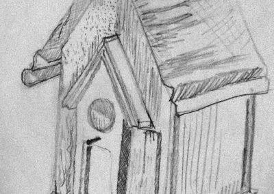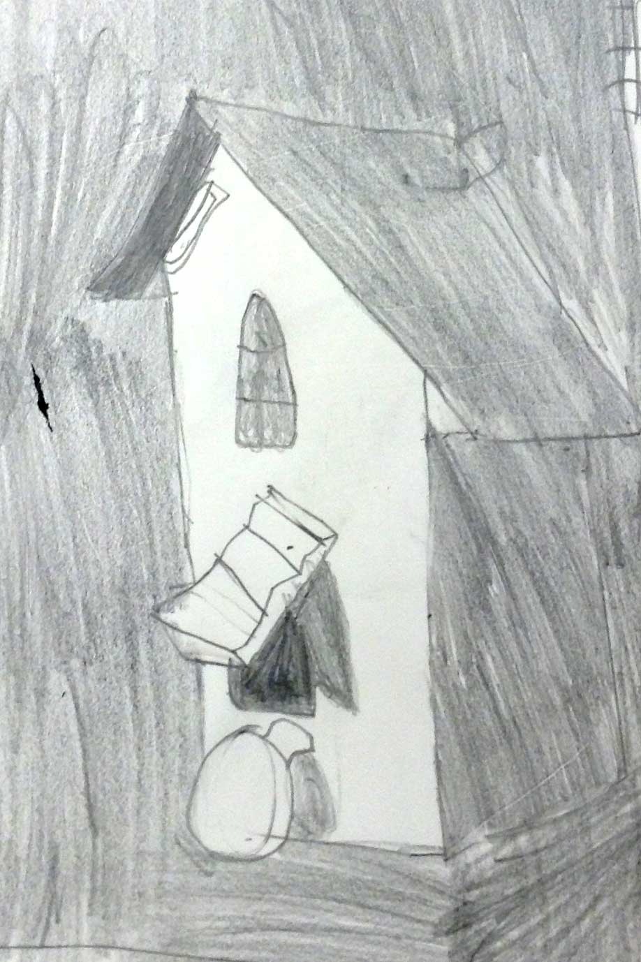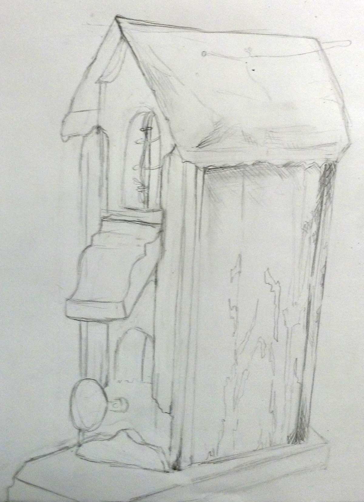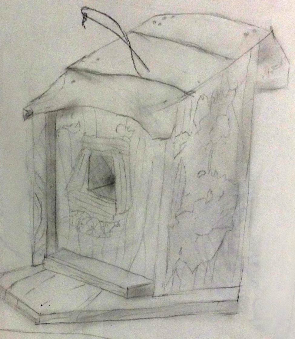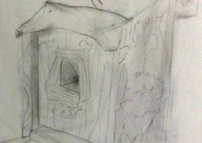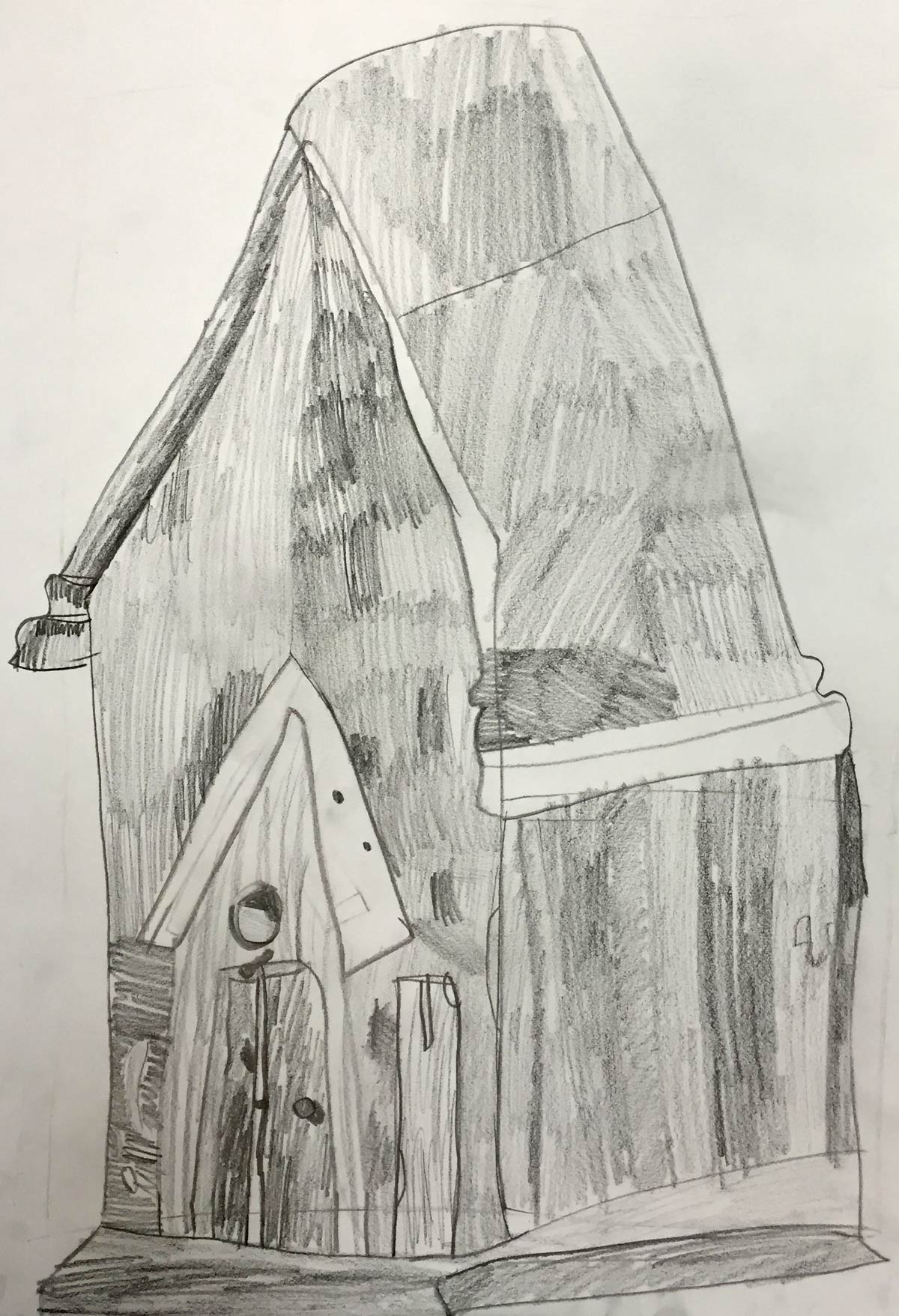 Everyone draws their birdhouse using good pencil techniques and taking their time.