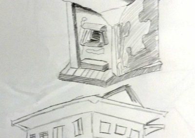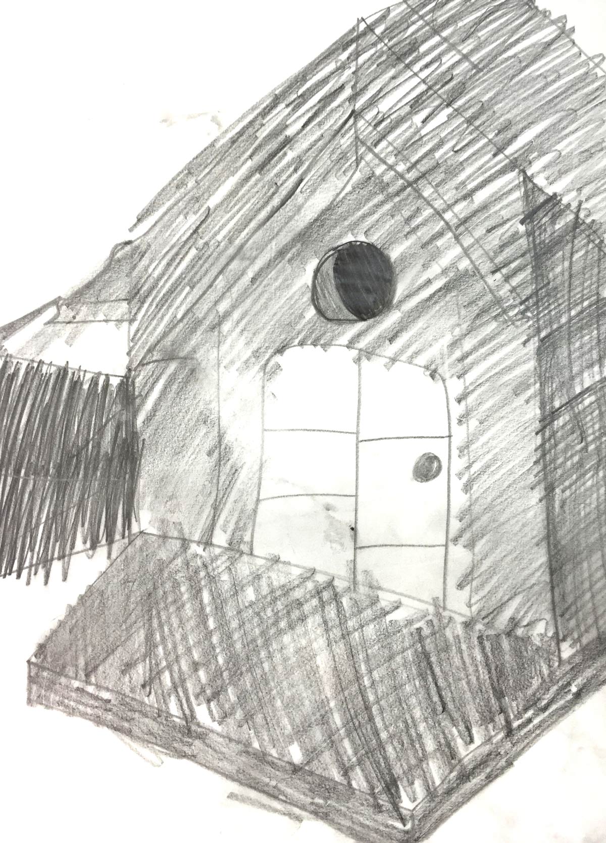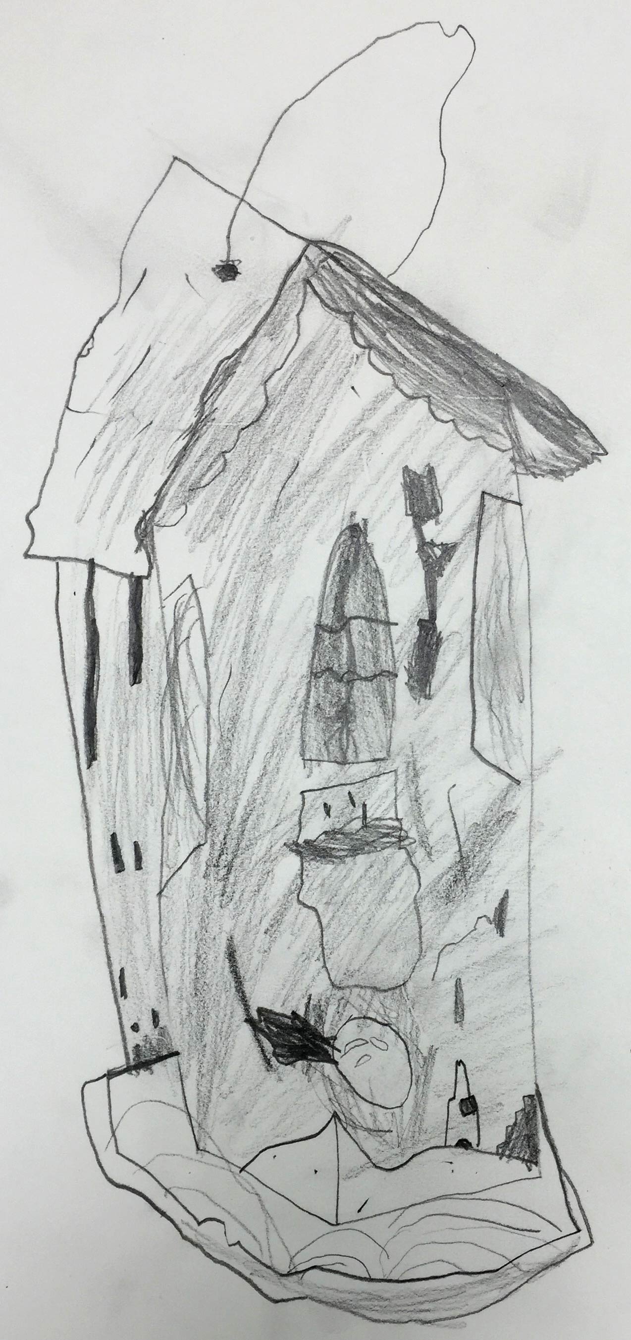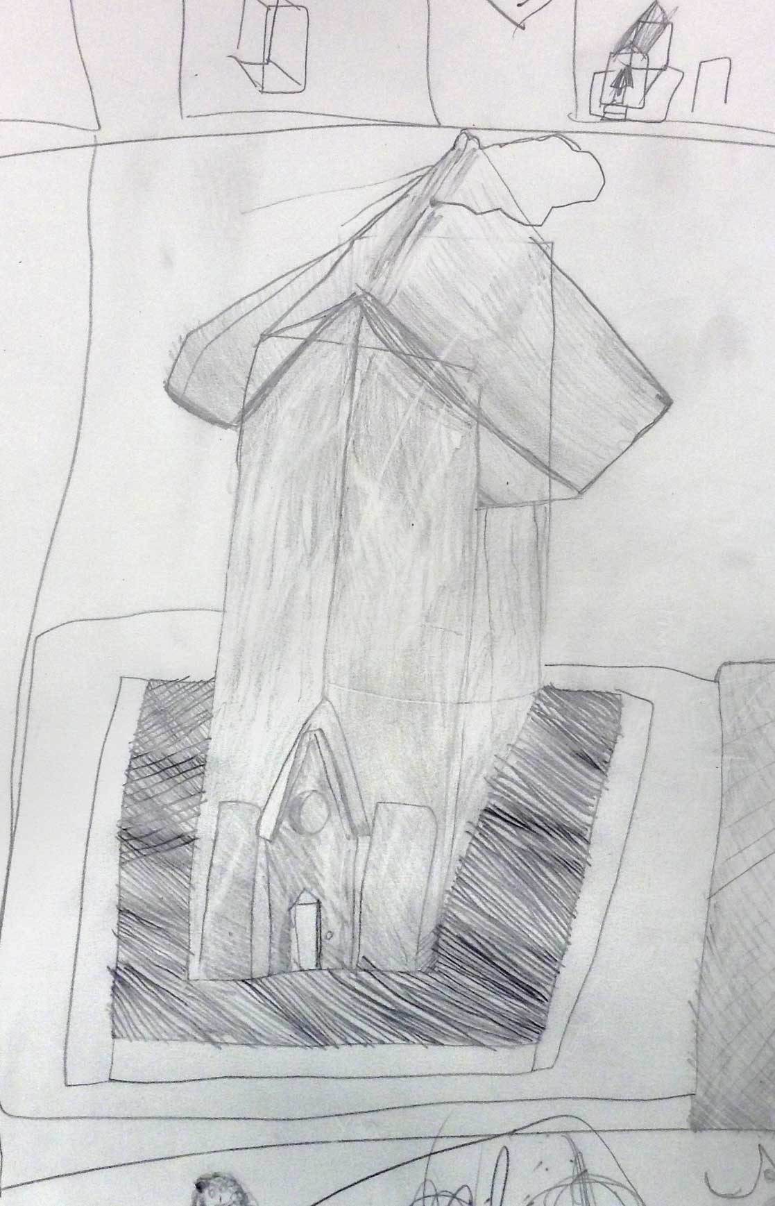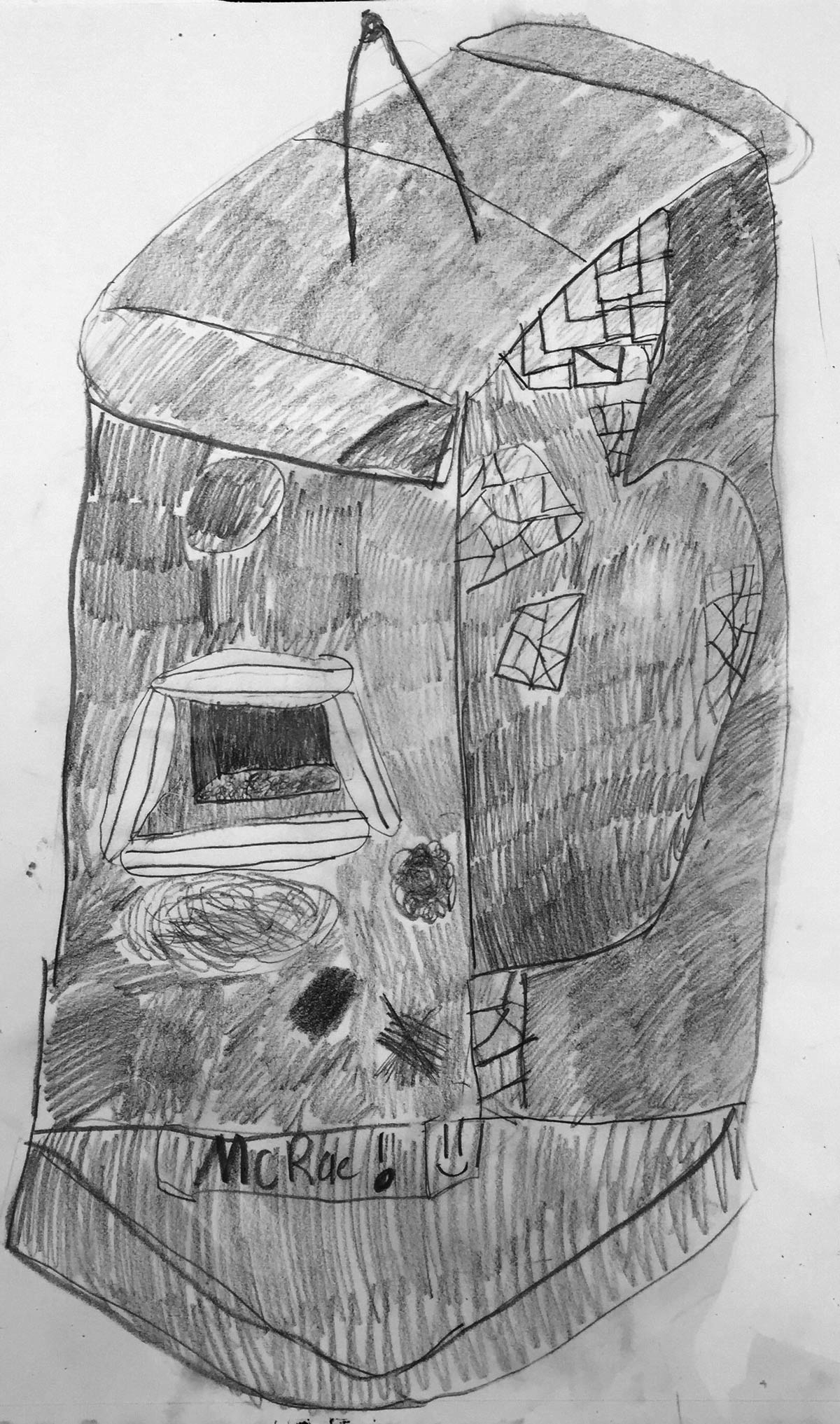 Everyone draws their birdhouse using good pencil techniques and taking their time.