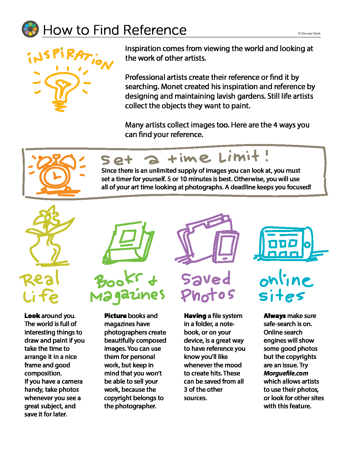 Have some still life objects and good photo references ready. Print all of your PDFs from the lesson plan and cut any references apart as needed.