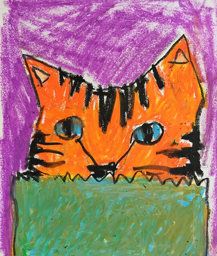 Using the picture of a cat from the handout, have students use oil pastels to color and blend their work.