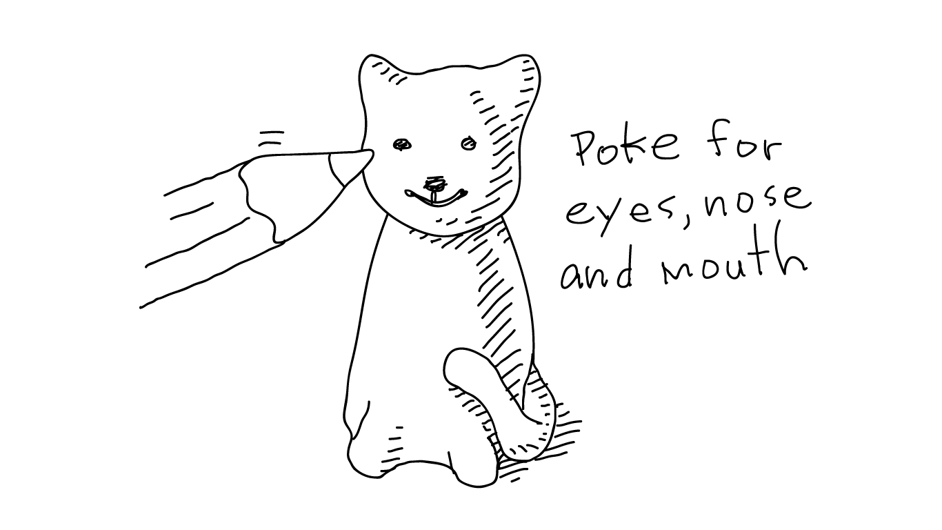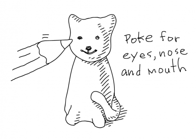 WHISKERS: Look at the whiskers in the photo. Put a few whiskers on each side of the face to finish.