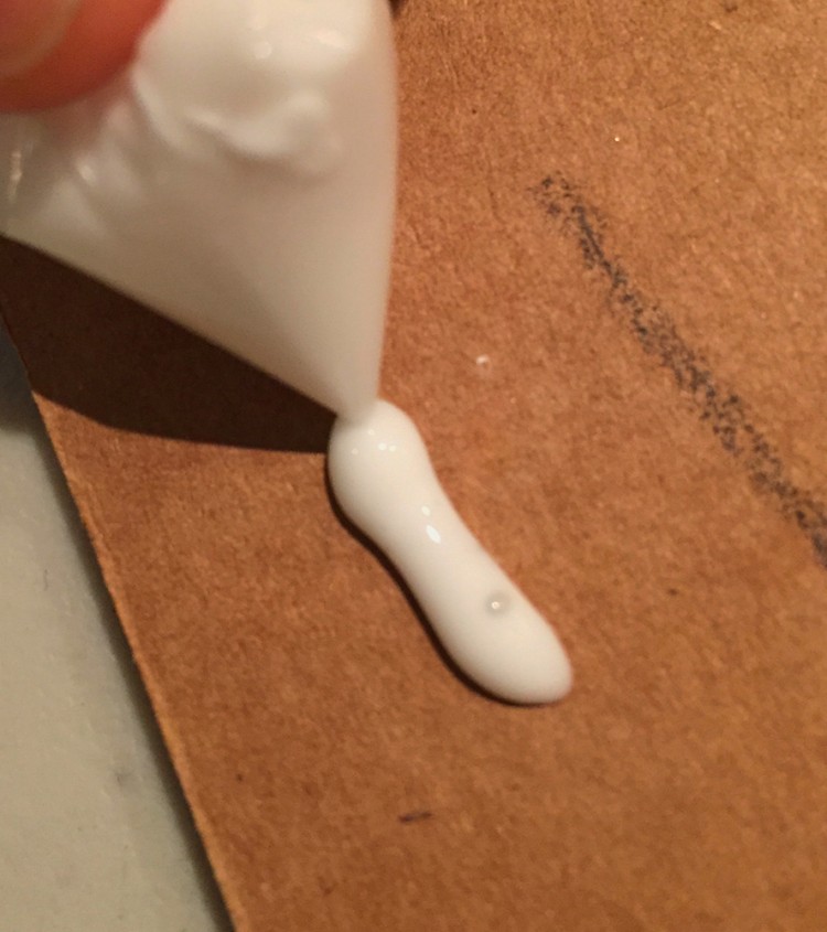 Use regular or tacky white glue to secure yarn onto the lines. Regular glue draws a little faster and can be put into baggies. Glue should be in good, clean-tipped bottles, to redraw the lines, but if you have badly tipped bottles (who has good clean bottles? I’d like to meet them), then you can use a baggie with a teensy tiny corner snipped off. You can squeeze the glue like cake piping. Just put the glue in the un-snipped corner first, and squeeze out the air. When we say teensy tiny, that’s exactly what we mean.