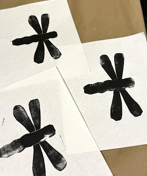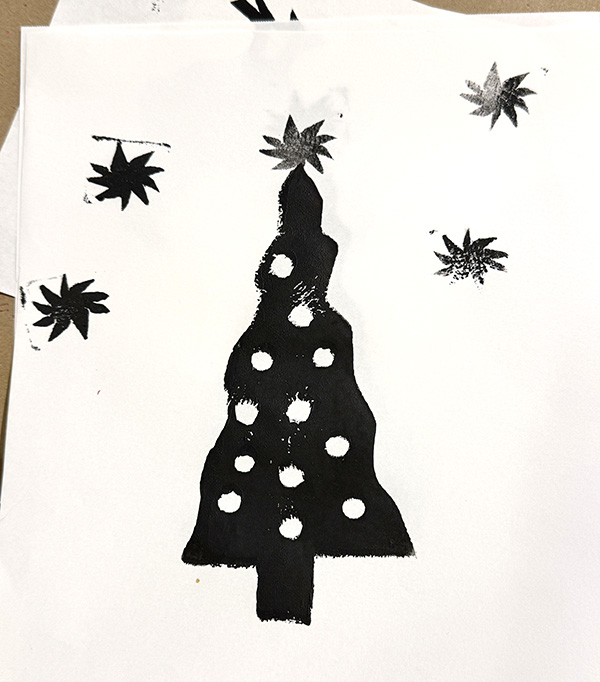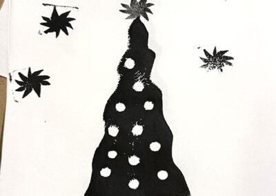 Students create a simple and delightful printmaking image, and use papers and ink to create a series of prints. can create many images that are all a bit different since they are hand-created. They make great gifts!– – –
