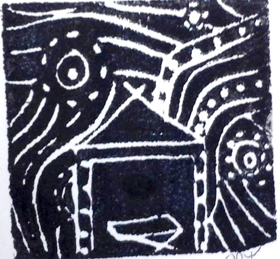 The second important thing is that the design will come out backwards! If you were here last week, you remember how we made mirror images? It will be just like that, as if you looked at your drawing in the mirror. That also means you can’t write any words. Just avoid those for this small print.”