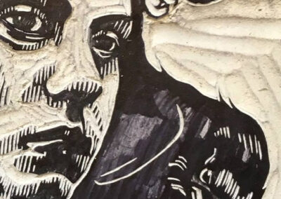 Too much detail – Making the print number ONE uses a painted line, which is then mashed down and will spread the lines to be a bit thicker. Make sure that students realize this and use the charcoal to make a version with heavy thick lines so they can see how it will work.