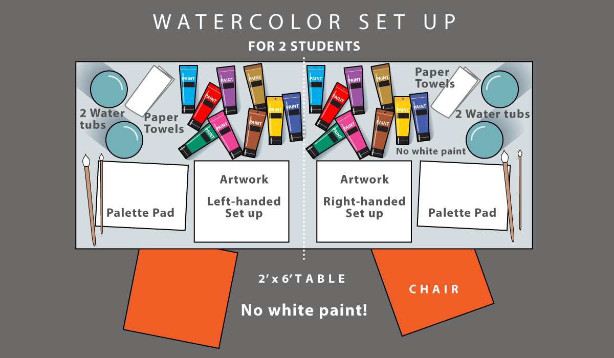 - You have 2 tubs: one for cleaning & one is the paint; water is the paint
