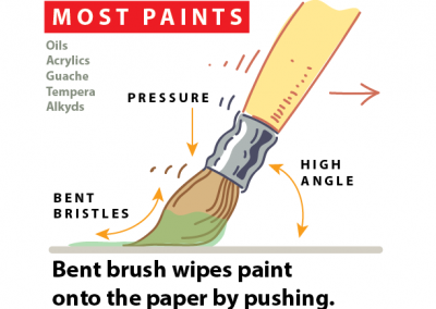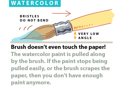 Messing with a finished area – Watercolor doesn’t look finished while wet, so students will tend to dab and stroke in a finished areas. This will create a bad-looking effect. Leave it alone!