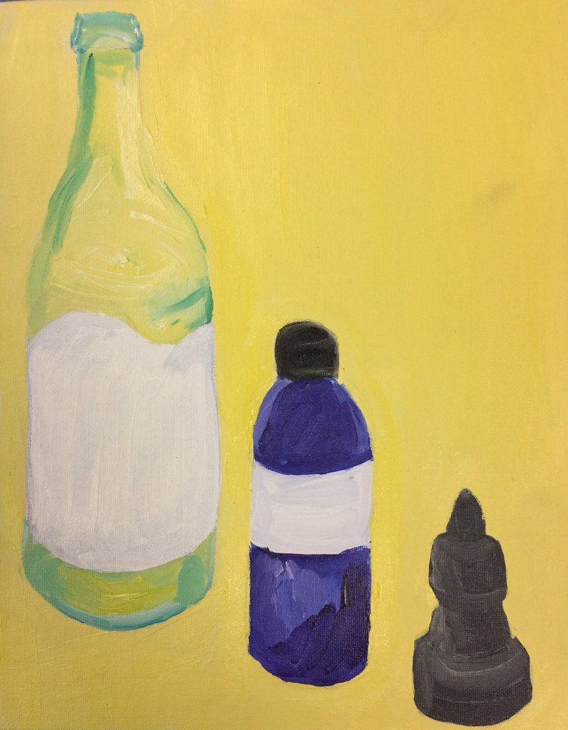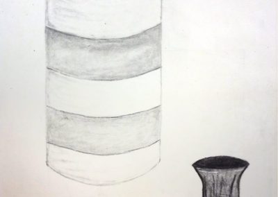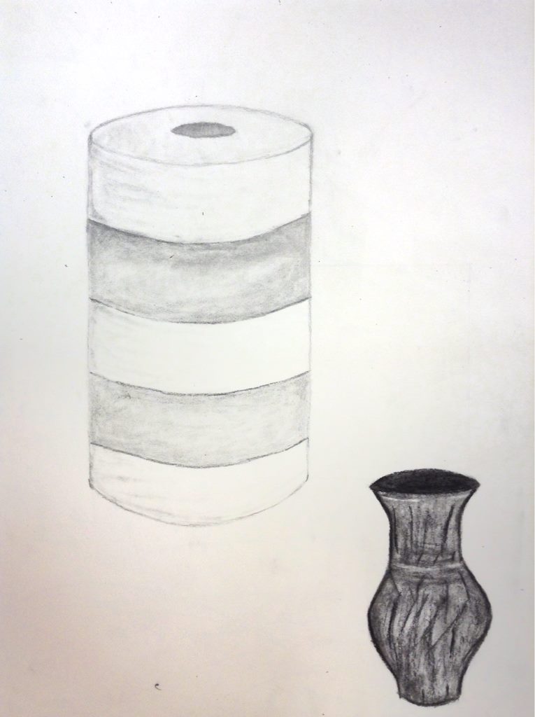 Step 1. (10 minutes) Set up objects for a still life, keeping the objects simple. At least 3 objects must be used. Select medium – and surface: either drawing paper or watercolor paper.