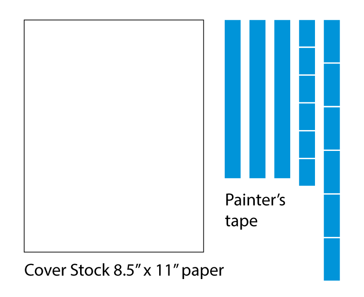 - Cut or tear off four 7″ to 7.5″ strips of painters tape, and one 12″ strip, for each student. Place 3 of the first 4 tape strips next to their work area so they can handle it easily (three quarter inch tape will work great).