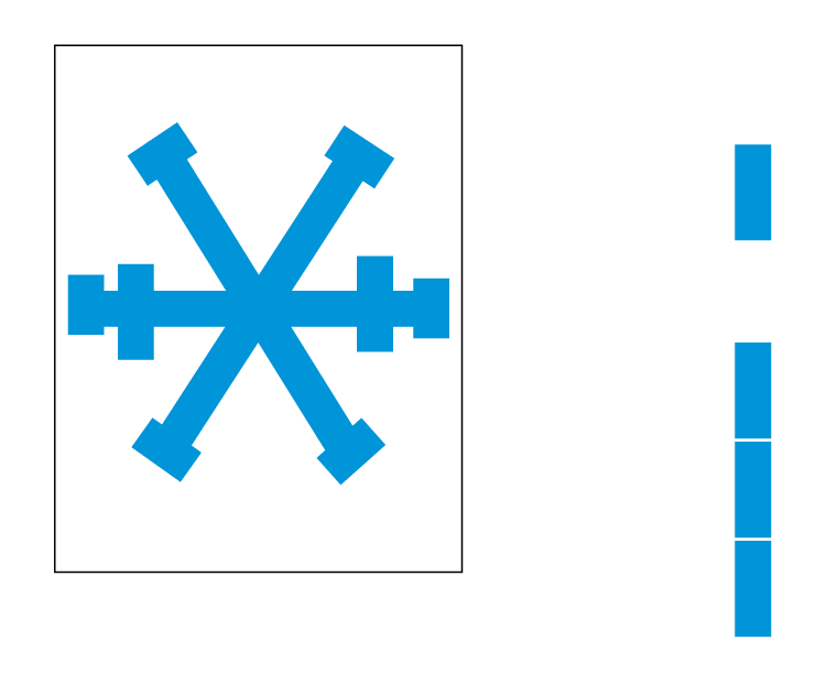 - Tape the small pieces to the ends of each large piece for the snowflake tips.