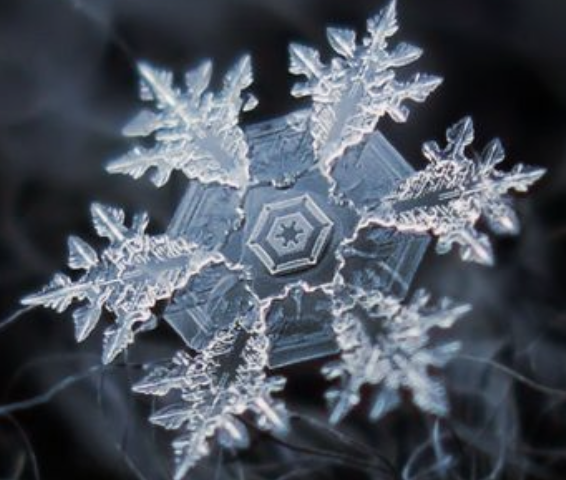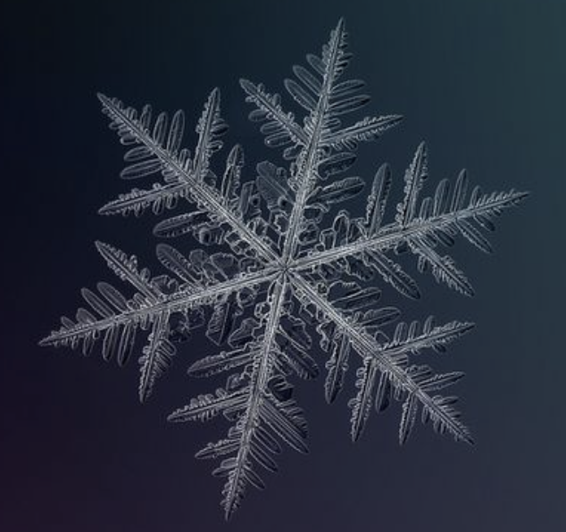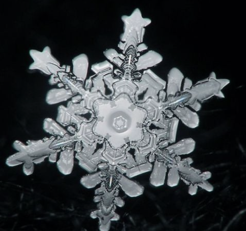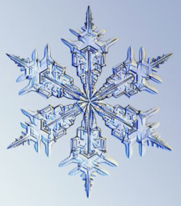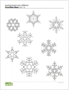 You might also notice how many points every snowflake has. That’s right; six points. See how each point looks the same as all the other points, or very nearly so. Some of them look like little trees.”