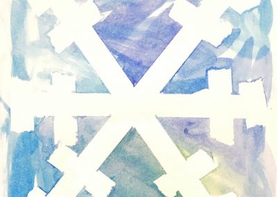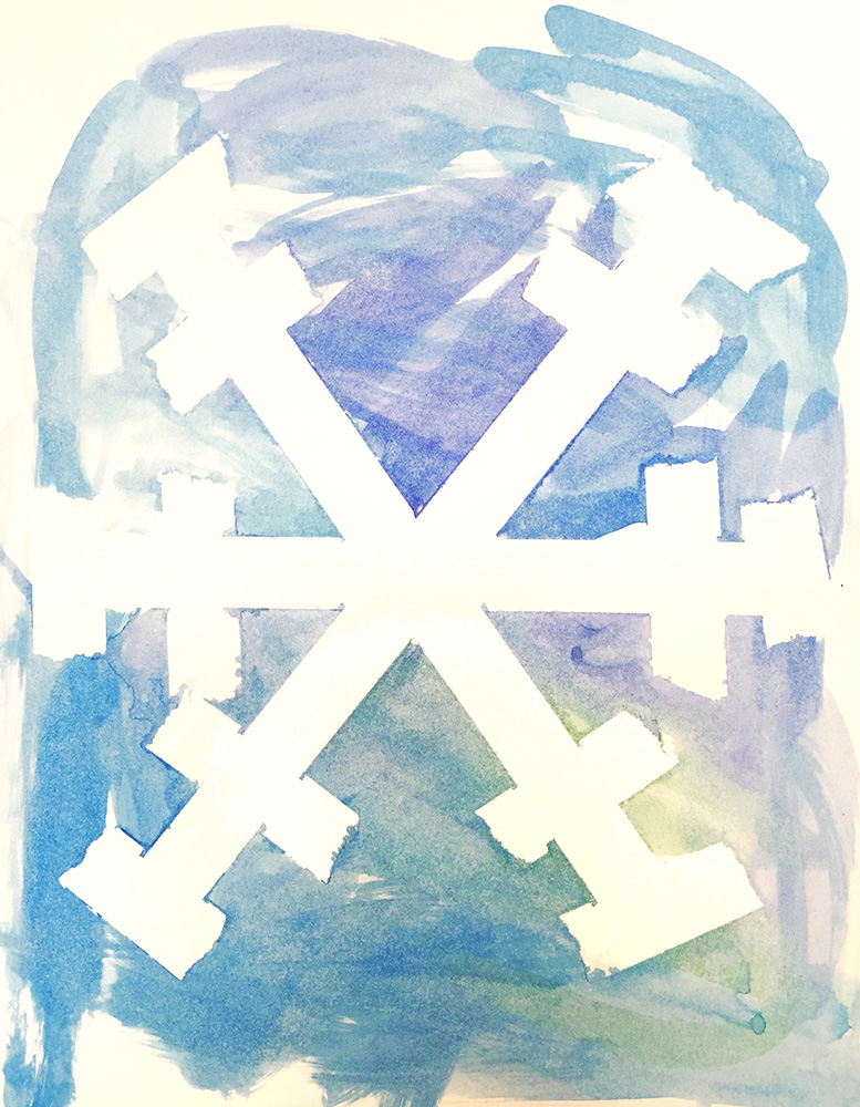 Resist – Today we’re doing a tape-resist. We’ll put down tape, and when we paint over it, the tape keeps the paint off of the paper where it is stuck. It resists the paint.
