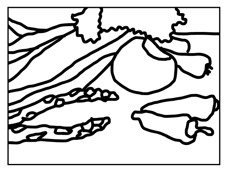 Do not shade the drawing at all. It should only be thick and bold outlines of the shapes in the picture. Tell students to not worry about accuracy too much, and to just do their best.