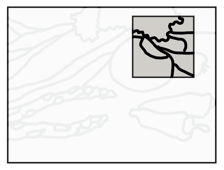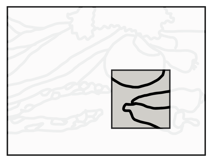 - Most important spot – Brightest colors and wiggly line all in same place, plus the only red and the only dark blue.