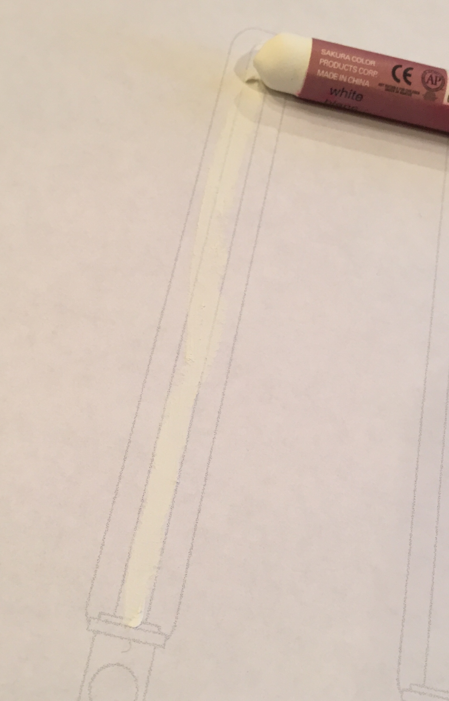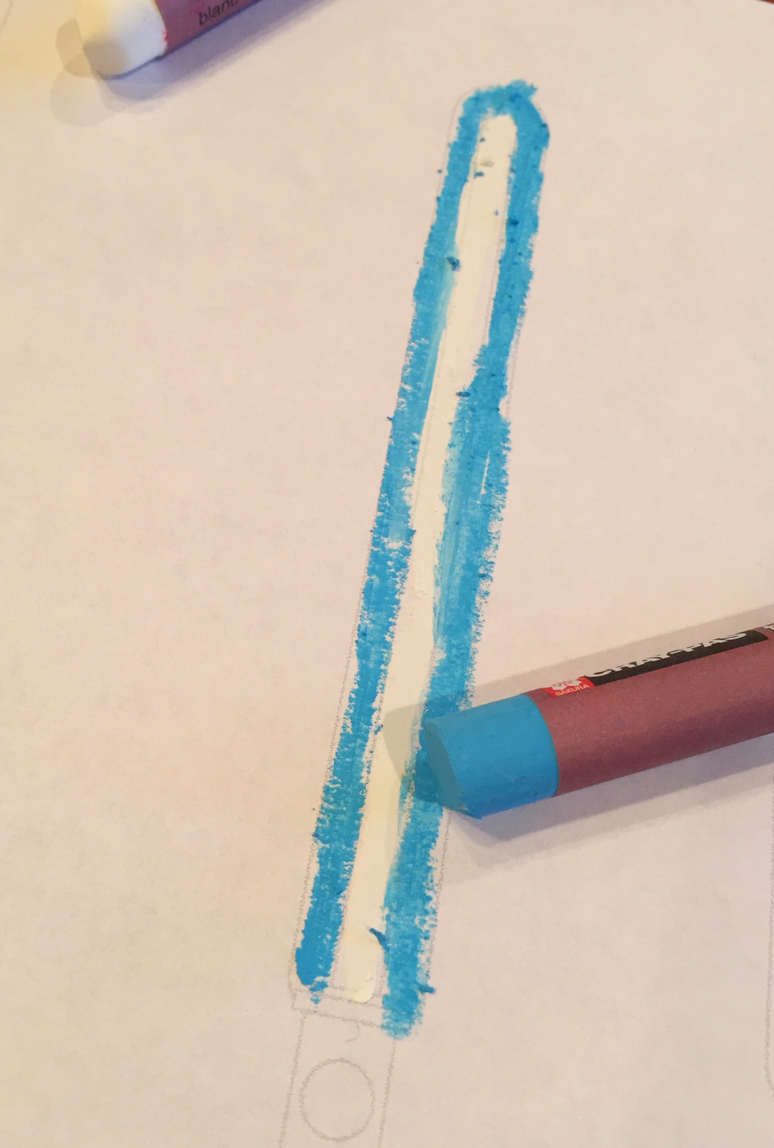 - Fill the very center part of the “blade” with a thick layer of white pastel all along the length.
