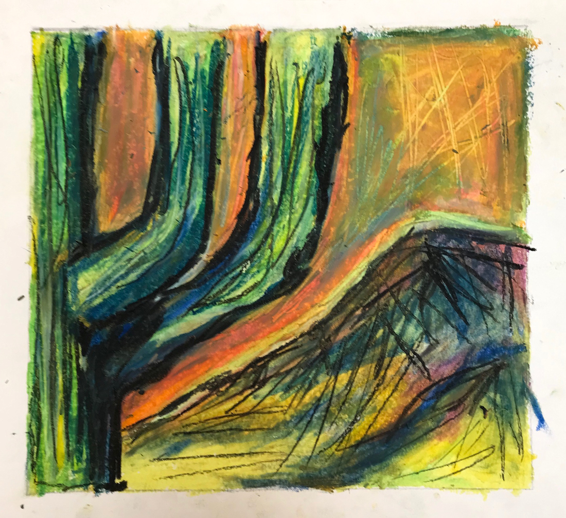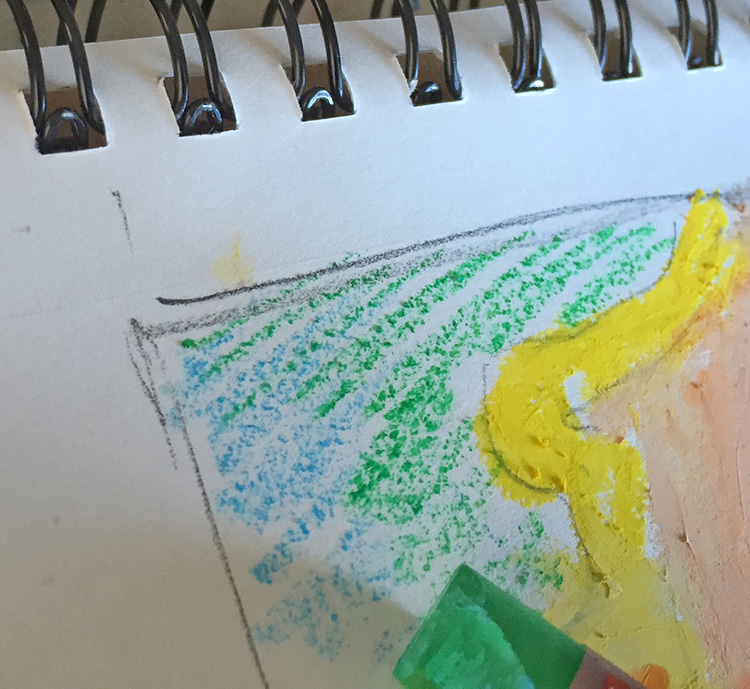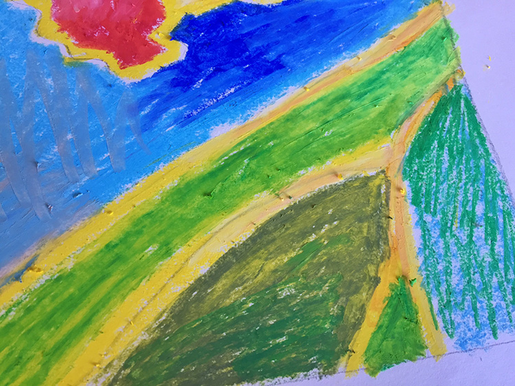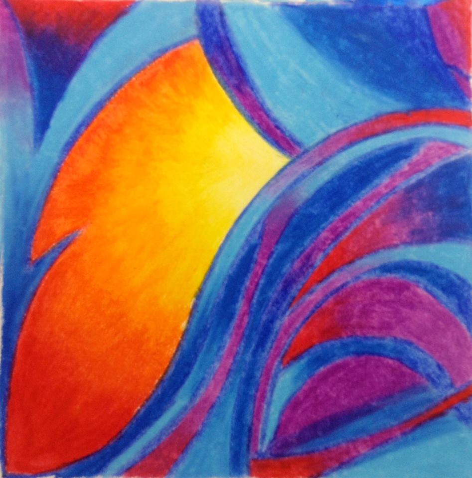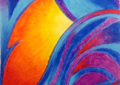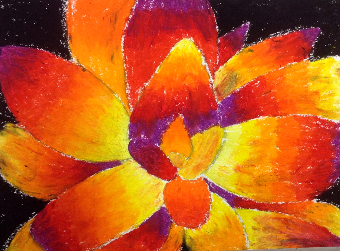 - Use the pastel on it’s side to create a lighter area with texture – layer other colors on top – blend together