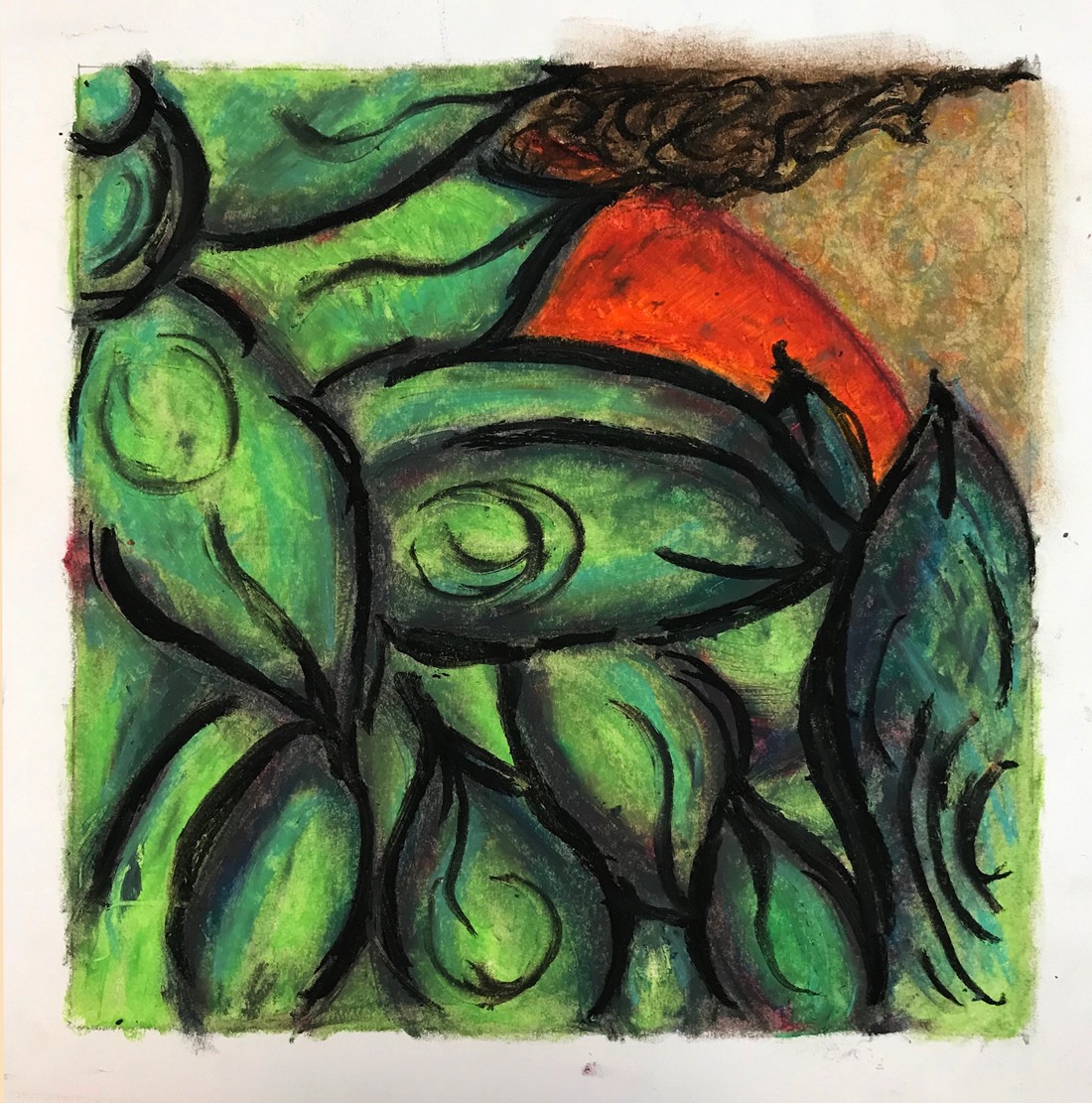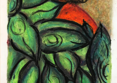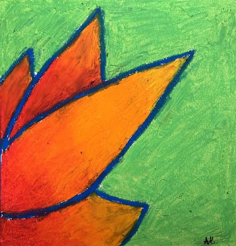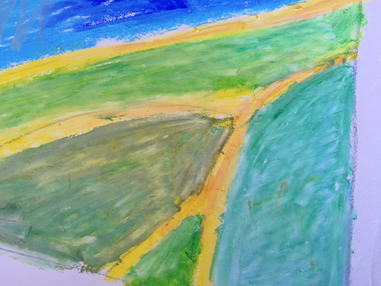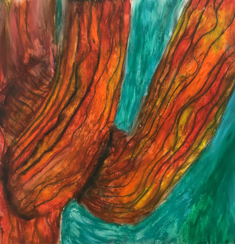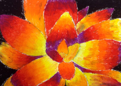 - Use the pastel on it’s side to create a lighter area with texture – layer other colors on top – blend together