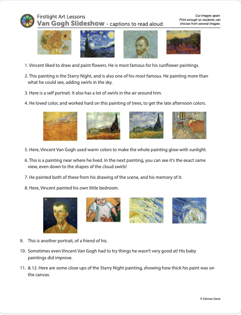 Print or open to view the captions you can read while you show the Van Gogh slides above.