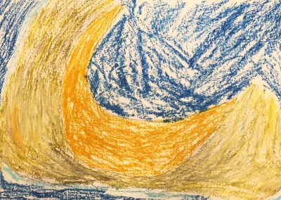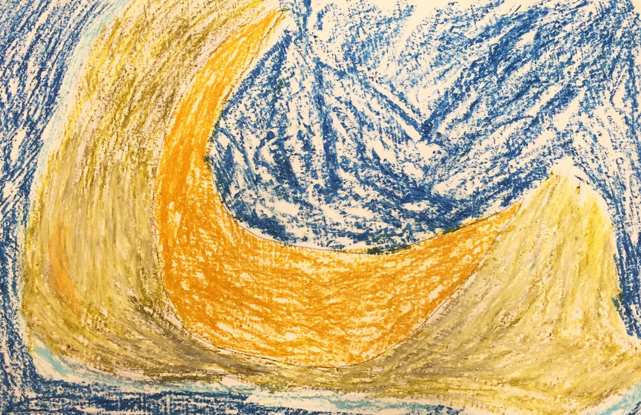 Students will compare wiggly and straight lines, and create 2 oil pastel and watercolor resist paintings: one with white pastel and one with dark pastels.