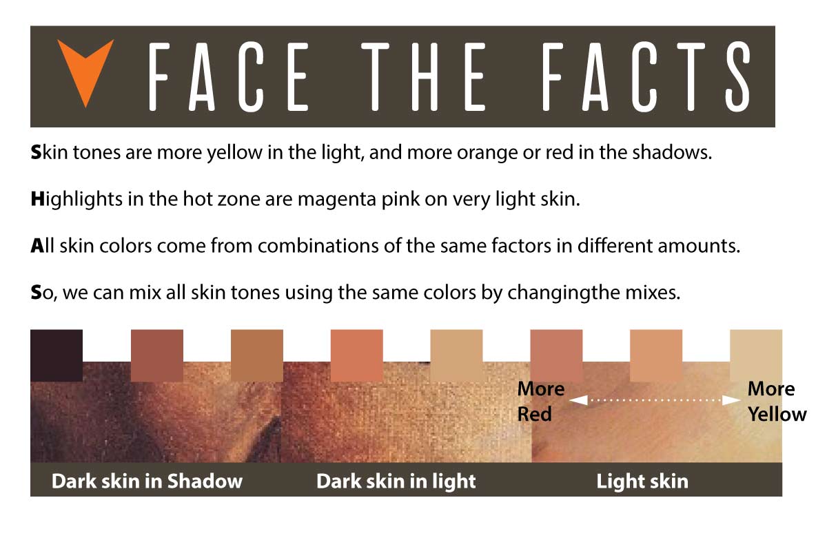 Shadow colors should not have too much contrast for these cartoon faces. If you see someone putting really dark shadows down, encourage them to lighten it up just a bit with a touch of white and by adding more of the bright colors like orange.