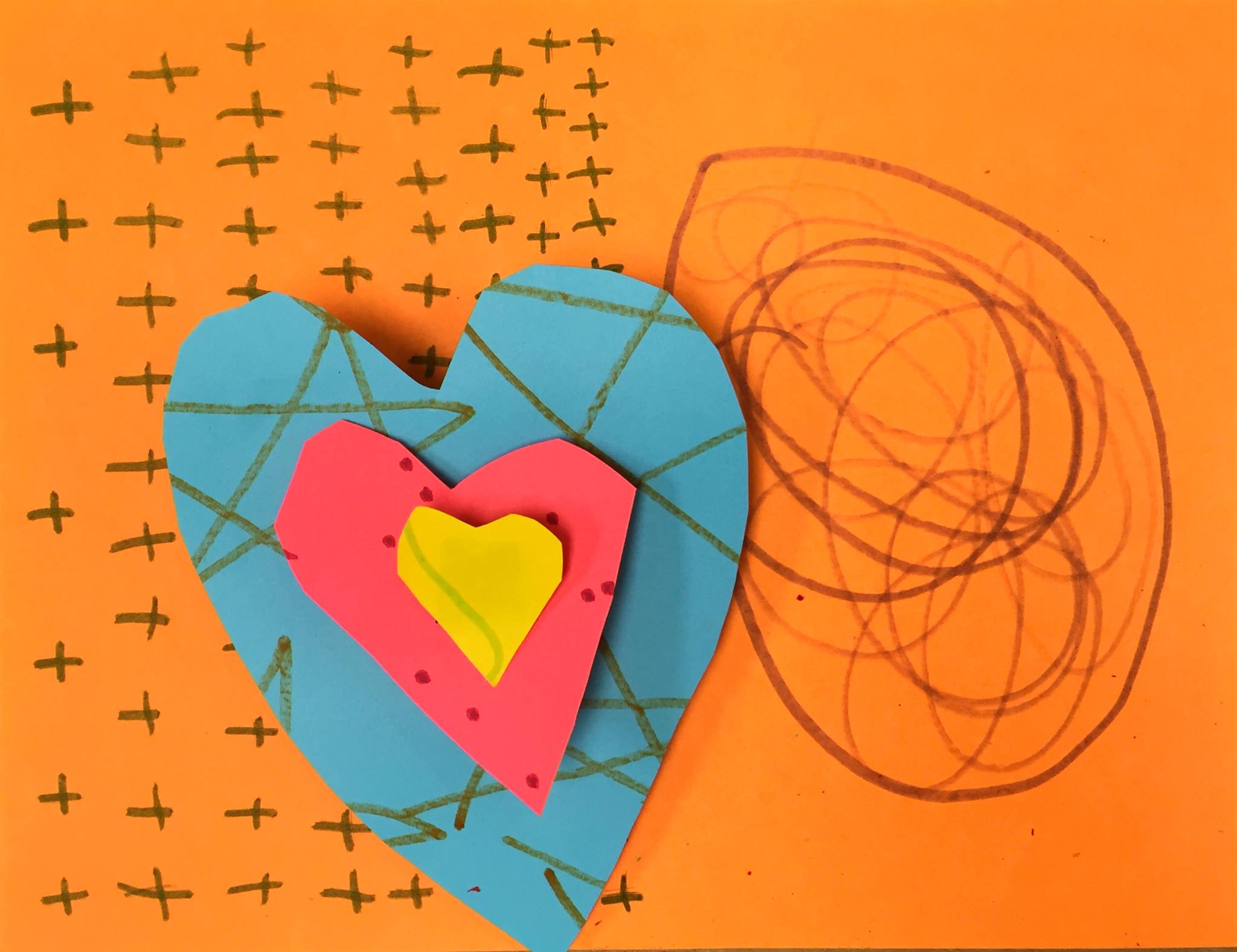 Students will make an art sculpture by cutting and pasting to create a 3D stack of shapes and color. They’ll be using paper they’ve colored and drawing on themselves. They’ll also have time for a fun artist game today.