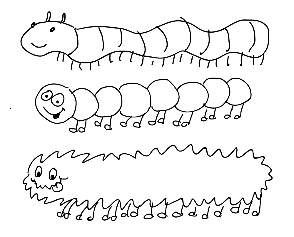 Have them draw a caterpillar in pencil. They can either use wiggly lines or they can make a bunch of circles in a line. If the circles are squished into each other it looks very caterpillar-like.