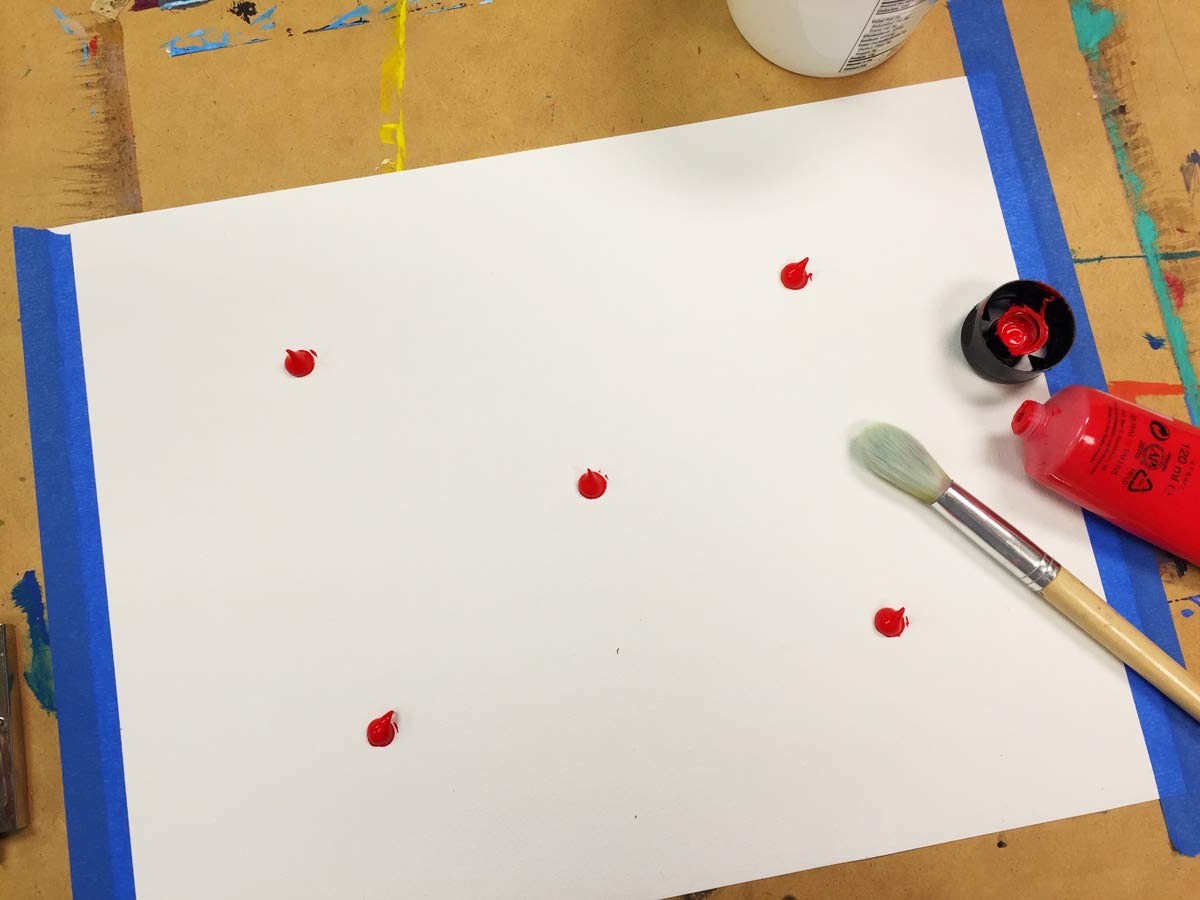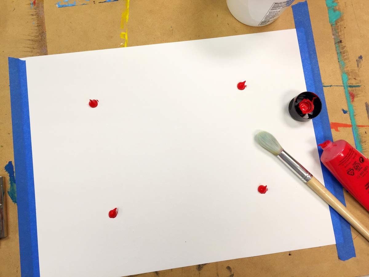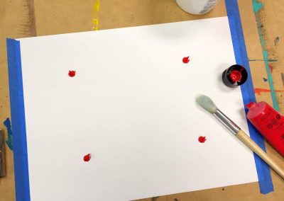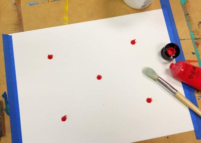 Make sure that all of the wet items (brushes, water, paint, and palette) are on the same side as the dominant hand of each artist. This prevents spills and drips on the artwork.