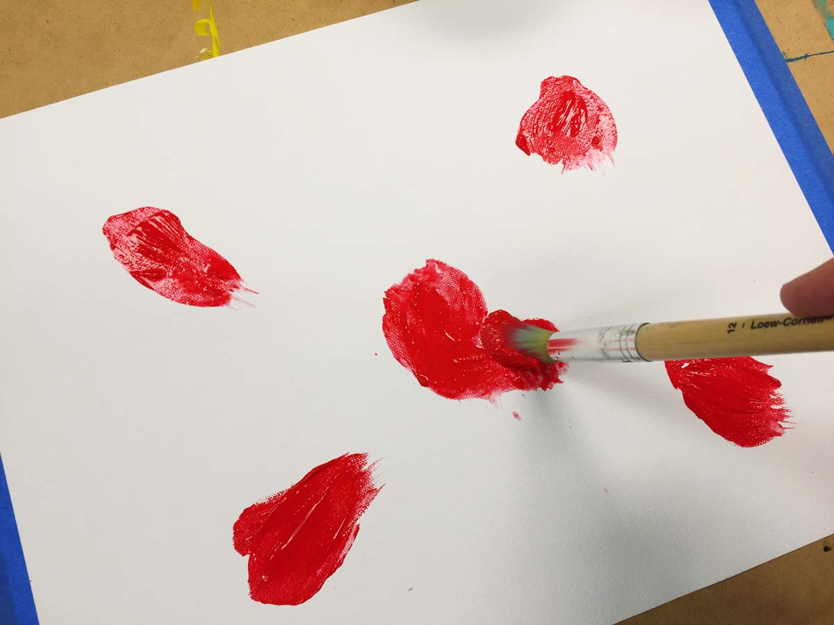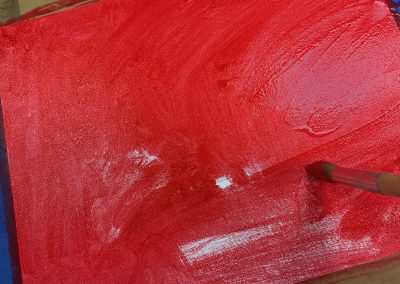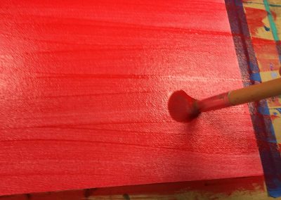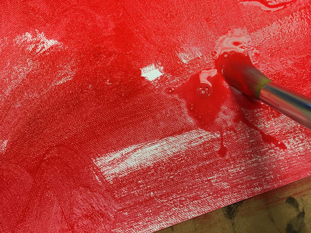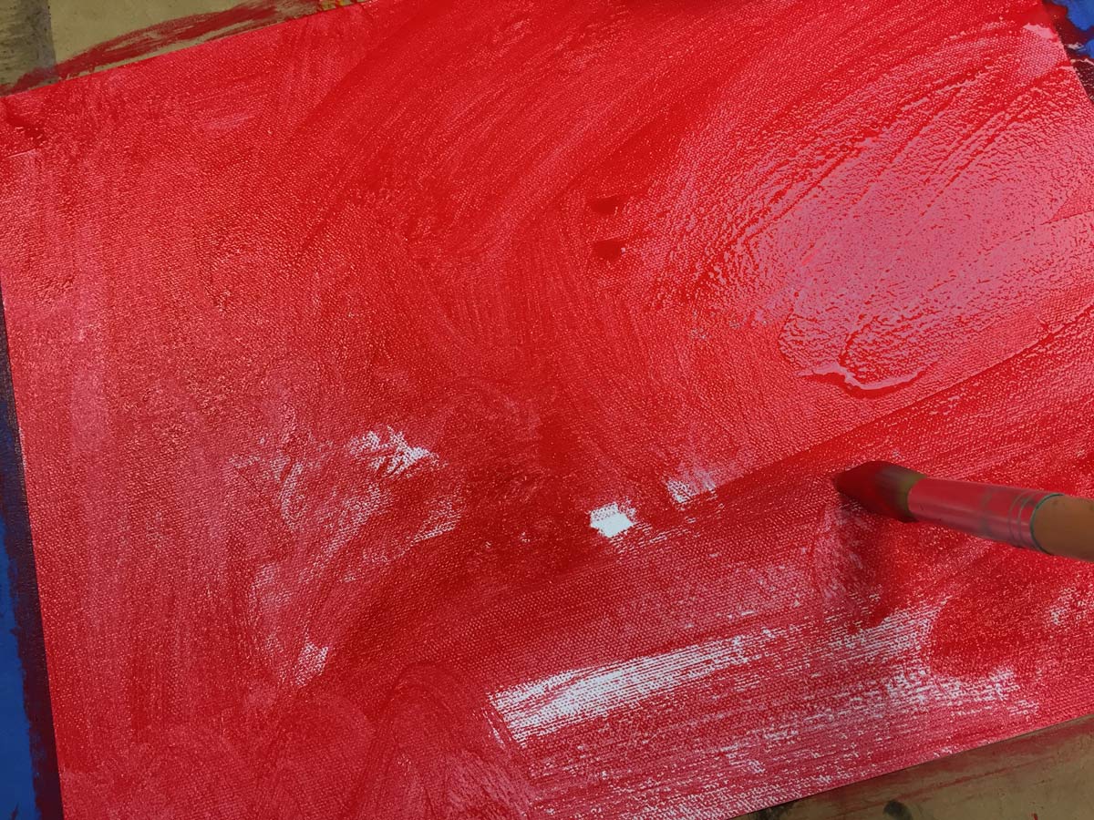 Thick underpainting – Having too much red paint will result in thicker globs and ridges, which won’t dry in time. It’s better to have a lighter red using some water to extend the paint so that it is thin enough to dry quickly.