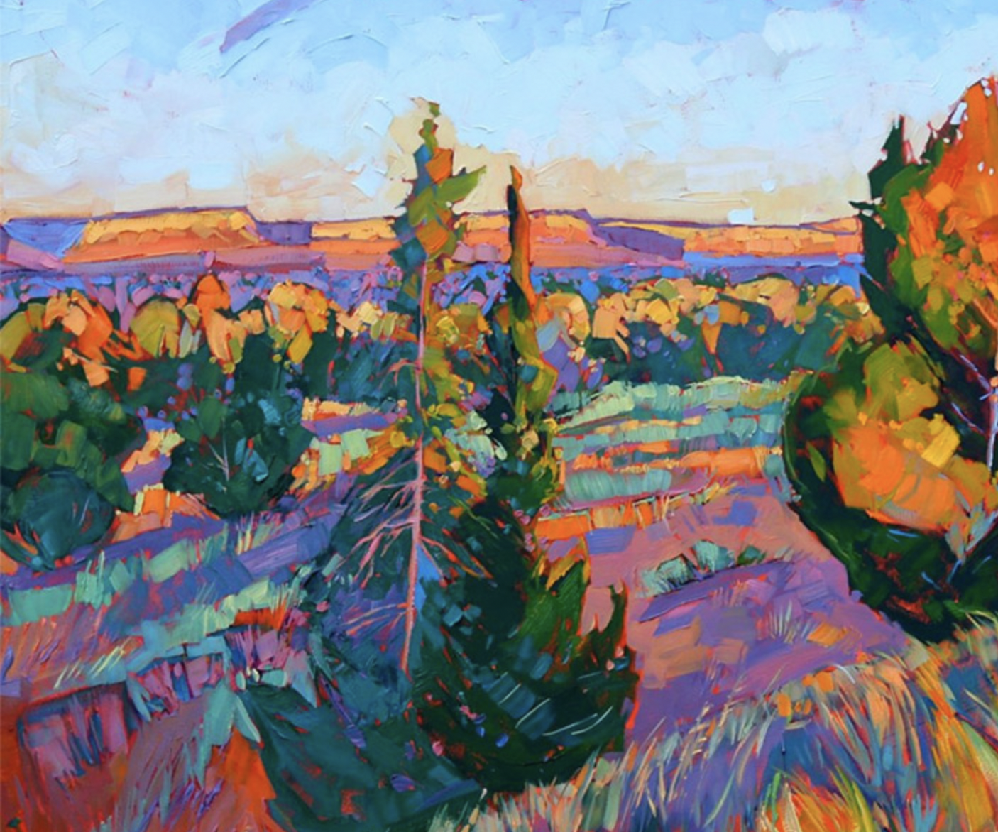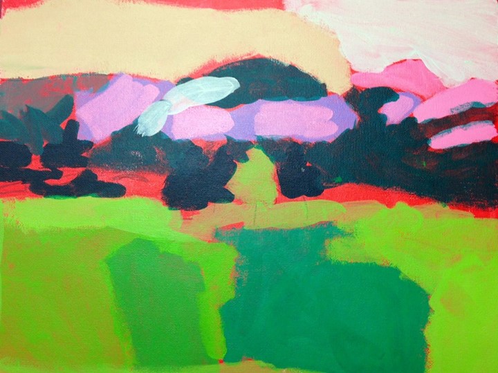Students will begin the first of two lessons, where they create a landscape in acrylic paints, using the classic red underpainting technique.