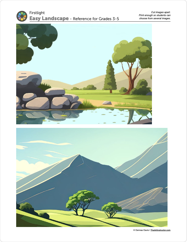 “Last week we used acrylic paints and learned how to handle a brush. Now we’re starting a 2-week landscape painting project, where you’ll get to practice painting, and also learn a great-looking and super-easy method that many professional painters use: changing the color of the canvas surface from white to a color. In our project we’ll be making the canvas bright red, which is great for landscape paintings.