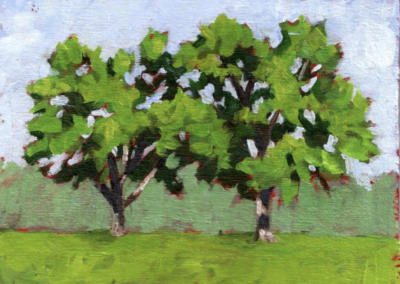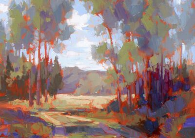 “If you finish your sky, you might have time to begin some trees just under the sky, but be careful of wet paint. You might do better to wait until next time to continue.