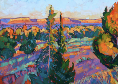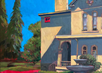 After students settle in to drawing, show some examples of paintings for the upcoming project. Use This Link or tap the icon to the left to open the artists’ blog page by Almira Hill Grammer, showing examples by an artist that uses red underpaintings in almost all of her work.