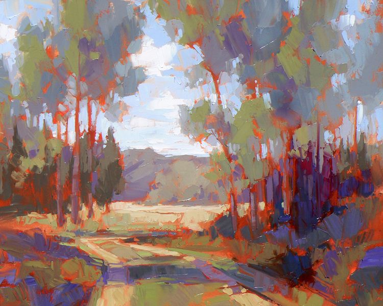 Today we went through all the planning and set up, and now you’ve started your painting. It will look dramatic, because of all the red showing through here and there. The bright color not only ties the whole painting together, but it also makes it look more vibrant and exciting.