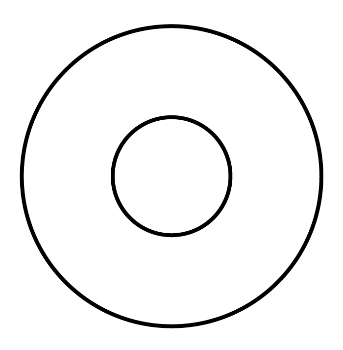 - Draw a smaller circle in the center of the large ones to make each one look like a donut. Like this:”