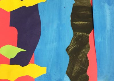Collage – when cut papers are glued to another surface or sheet of paper to create a work of art.