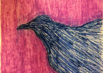 Once the frame and big shapes are drawn, students need to get out their oil pastels for an abstract version of the image. This can be fun. Encourage your class to think about using non-accurate colors. Accuracy is a choice, not the ultimate goal.