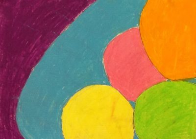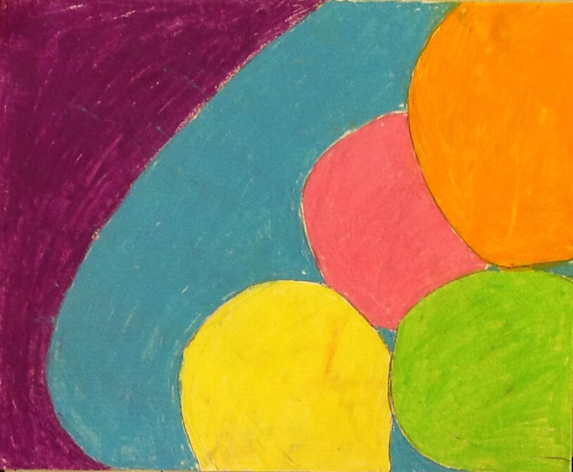 - Color each shape a different oil pastel color – realistic or expressive and fun colors. Fill in loosely, not worrying too much about full coverage right now.