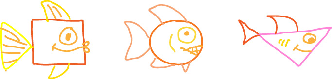 After they’ve made the basic shapes, have your students trade out the 3 markers for 3 new markers that are also warm or hot colors. Then go ahead and display the first slide with the fish.