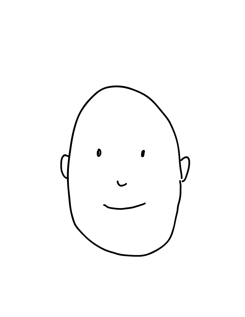 Start by drawing the Big Shape much, much bigger than shown and very lightly. We’re using the same Big Shape that looks like a tall peanut, that we traced over before. This cartoon should fill the page.
