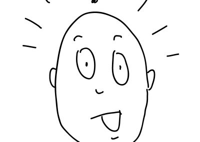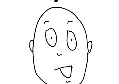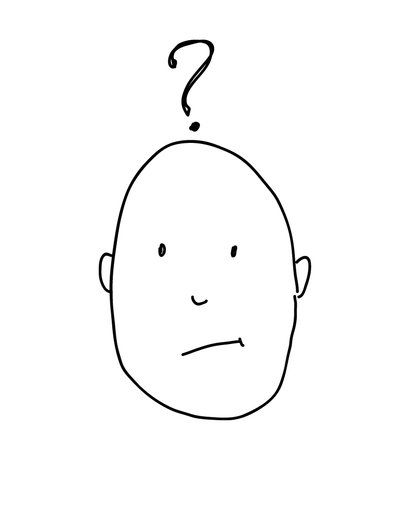 “Here is a cartoon character. What if I want to make him look confused? With cartoons, it is very common to see the artist place a symbol over the head of a character. Well, when someone is confused, they usually have questions, so I can put a question mark over its head, like this. I also need to take his smile away, because confused people are not usually smiling.