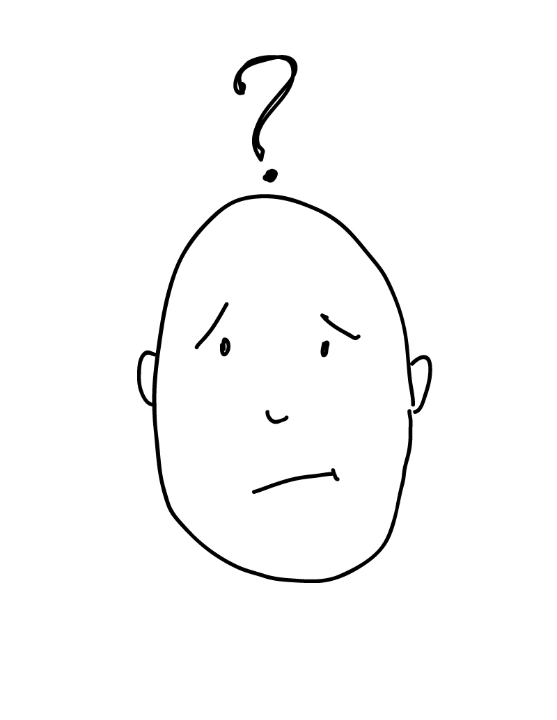Now my cartoon looks confused. Another symbol for confusion is to add worried eyebrows, like this.
