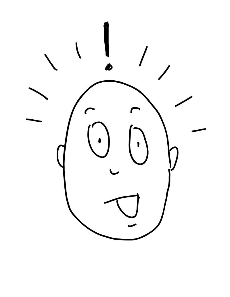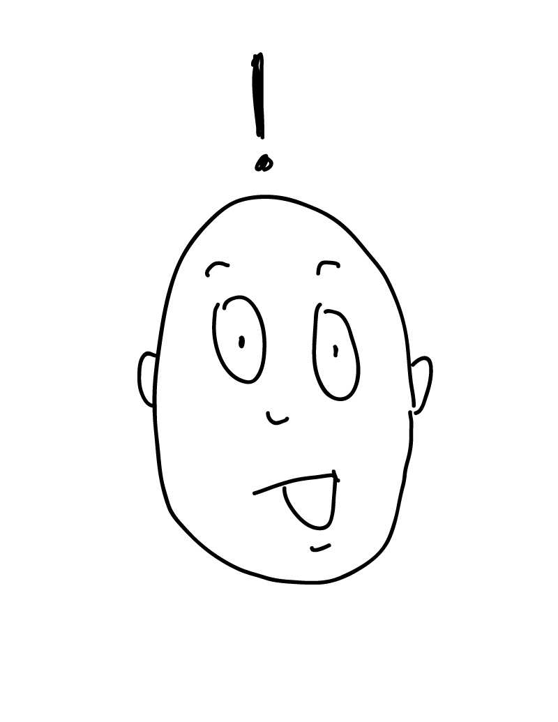 If I want to make a character look surprised, I need large open eyes and a symbol over the head. I can use an exclamation point, like this, and I can also use lines around the head like this.