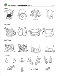 Explain to them that as we go down the character, we can mix the character parts! It’s a Cartoon Mashup!
