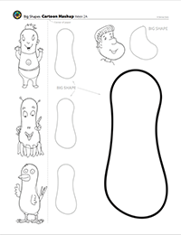 Students draw a cartoon using the Big Shape. Use a sheet of copy paper and place over the handout so that the left side of the paper with the small cartoons can be seen, but the Big Shape on the right is underneath the new sheet. They should be able to see the Big Shape through the paper just enough to use it as a guideline.