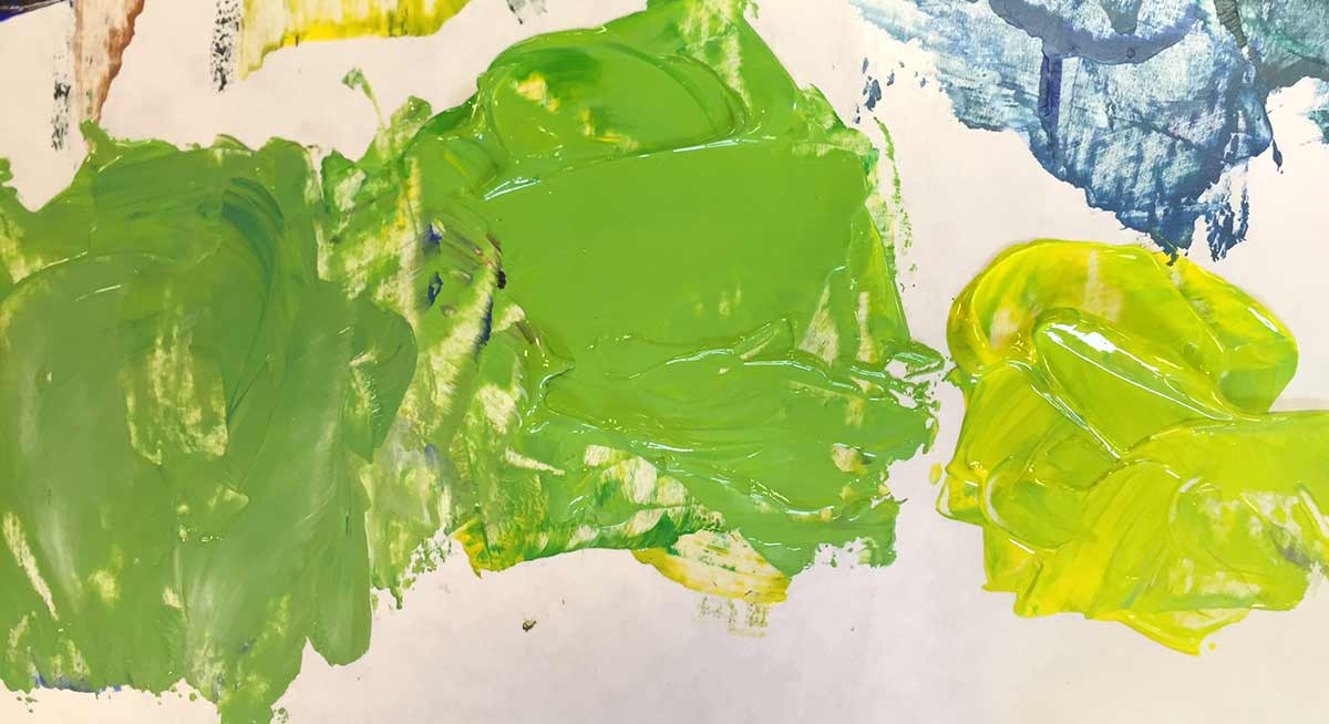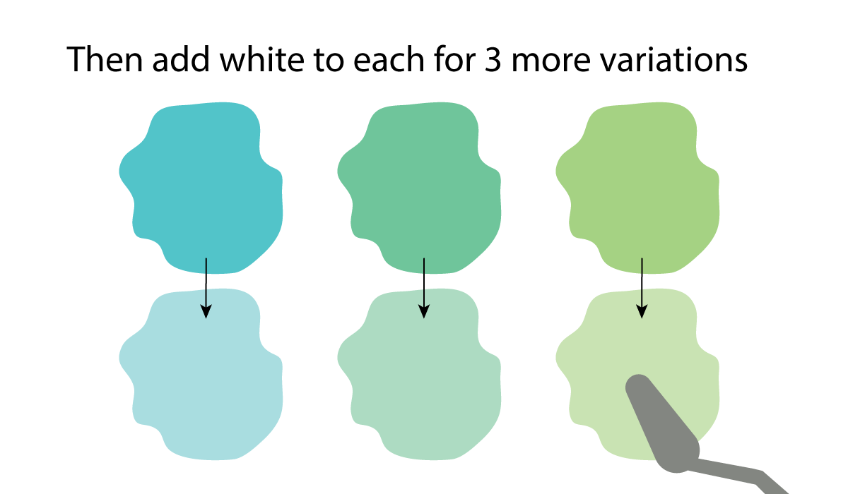 Add white to part of the new blobs, so that you have 3 more colors that are a little bit light. Now you have 9 colors!
