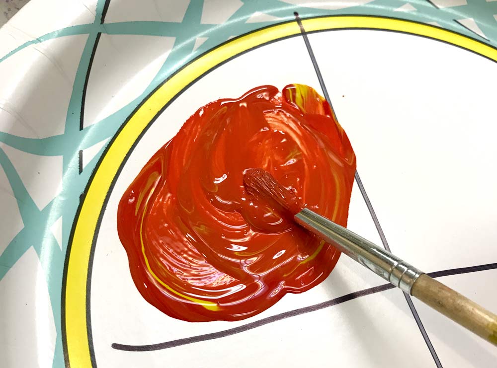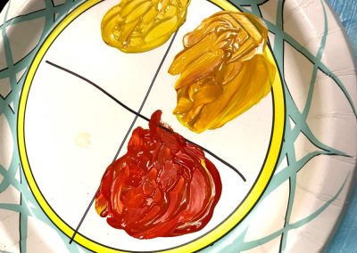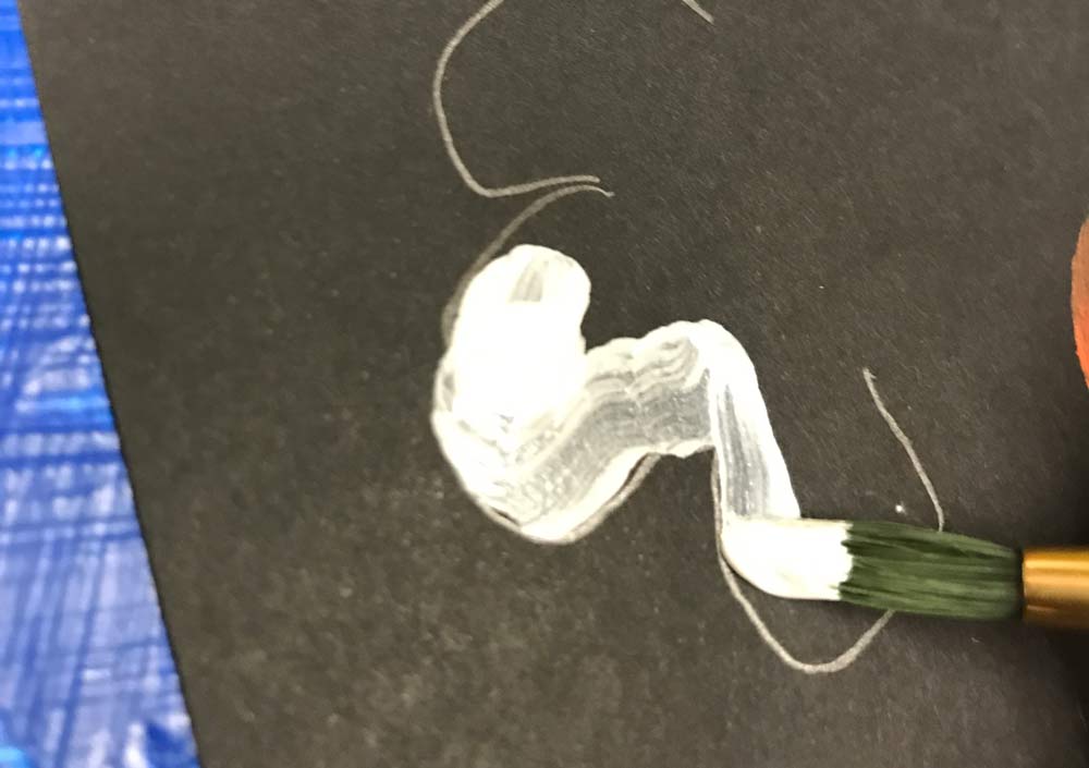 The purpose of this part of the lesson is to get started with the paint and for it to be easy and fun. Say encouraging things.