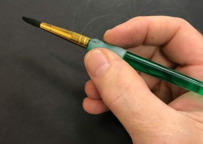 Remember how I showed you to barely touch the paper with your brush? The bristles don’t bend at all because you almost don’t even touch the paper. Just the tippy tip of your small brush will be used.