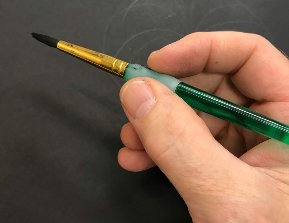 One way is hold it like a pencil. That gives you the best control if you are using a small tipped brush and doing lines, edges, or details.
