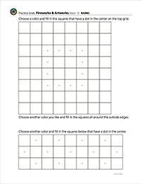 - Filling in boxes helps the patterns emerge on the grids. Some children will just put a few lines in each box. See if you can get them to use the wider side of the marker tip and do a little more. “And a little more!”